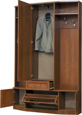 Кроме того, что этот шкаф подойдет по размерам практически в любую прихожую, он еще и отлично впишется в любой интерьер. Тем более что можно выбрать один из пяти возможных вариантов расцветок. Он подойдет для использования в комплекте с другими составными частями композиции мебели прихожей, а также отлично будет смотреться самостоятельно. Модель выполнена из качественных материалов, оснащена хорошей фурнитурой. Дизайн и комплектация грамотно продуманы и воплощены.