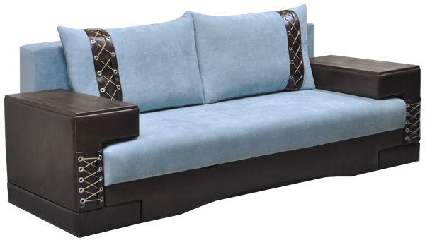 Современный стильный дизайн. Возможность использовать как центральный объект интерьера. Для трансформации требуется небольшое расстояние между стеной и диваном. Ровное спальное место. Наличие бельевого ящика. В основании спинки и сиденья деревянная рамка с латами, на которую кладется пружинный блок с настилом из термовойлока и эластичного листового пенополиуретана. Диван комплектуется приспинными подушками со съемными чехлами и декоративными элементами. П- образные подлокотники выполнены с декоративными накладками из МДФ. При раскладке дивана подлокотники необходимо откатить в сторону, для чего они оснащены роликами. Подлокотники также можно использовать в качестве передвижного столика. Механизм раскладки "Еврокнижка".