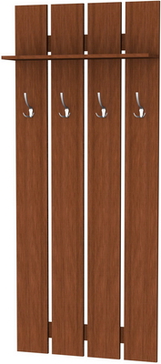 Более того – эта модель вешалки замечательно сочетается практически со всеми возможными вариантами мебельных комплектов, которые приобретаются для прихожих, ведь она может изготавливаться по Вашему желанию в одной из представленных вариаций расцветок. Пять замечательных цветов покрытий, имитирующих ценные породы древесины, украсят даже самую скромную прихожую. Это ясень, венге, дуб (в двух оттенках) и ольха. Незачем загромождать пространство шкафами, когда есть такая замечательная, стильная модель, которая выглядит солидно и дорого. Ее нет необходимости прятать, наоборот – она способна внести изюминку в интерьер. Хорошая фурнитура замечательно дополняет вешалку, сверху предусмотрена полочка для головных уборов.