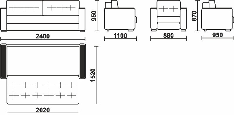 Габариты дивана: 2400х1100х950