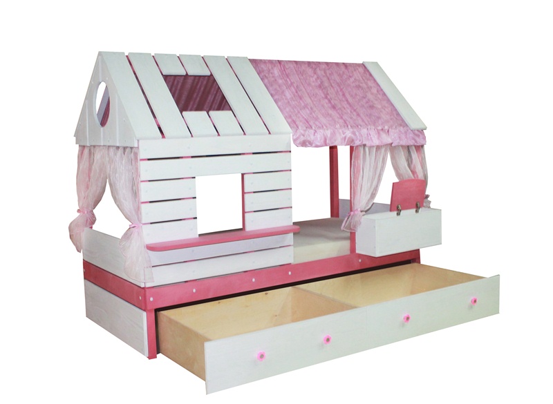 Домик выполнен вручную из экологически чистых материалов: массив сосны, натуральные ткани, краска на водной основе.