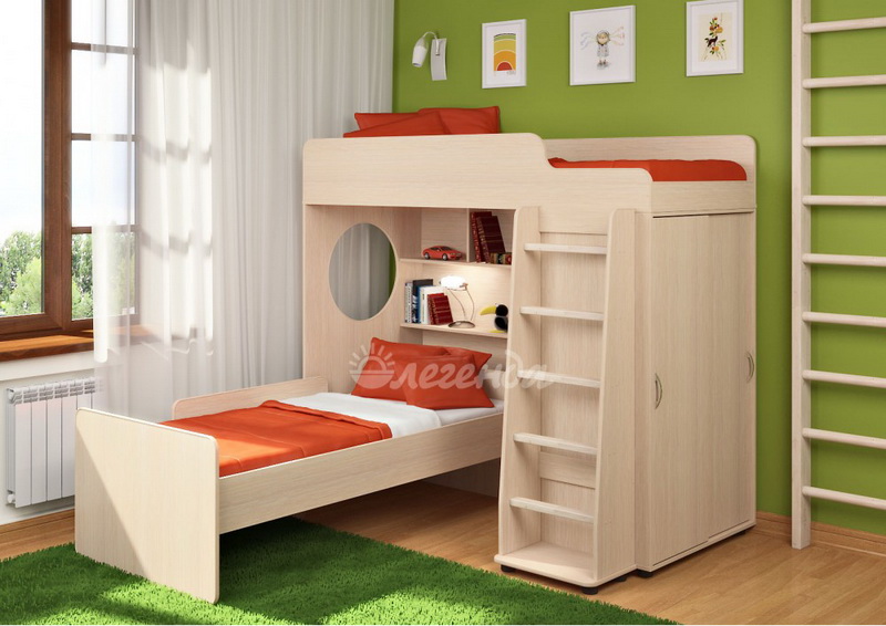Двухъярусная кровать с двумя большими перпендикулярными спальными местами размером 1900х800 и 1800х800.
