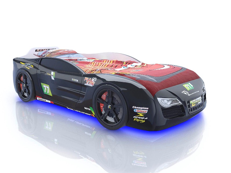 Вы только посмотрите на изгибы бампера, мощные колеса, стильный дизайн – ну какой мальчик устоит перед таким подарком? Все элементы уникальной кровати-авто полностью обтекаемы, они выполнены в технике 3д и повторяют форму настоящей спортивной машины. Подарите радость своему сыну, внесите новизну и краски в его детскую, а он отблагодарит вас любовью и заботой. Замените обычную унылую кровать на современную, стильную и оригинальную спортивную машину, которая будет радовать ребенка на протяжении нескольких лет.