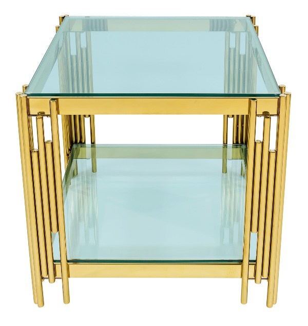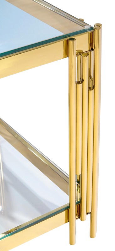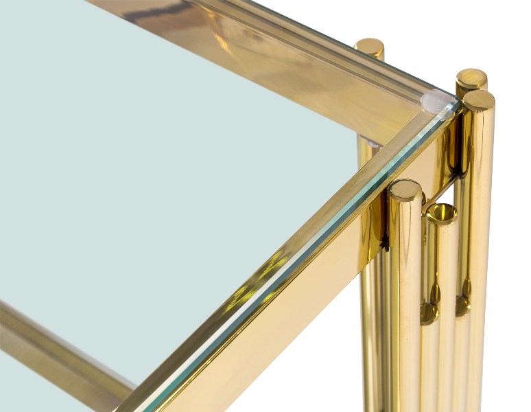 Журнальный столик ГЭТСБИ, прозрачное стекло, сталь золото.